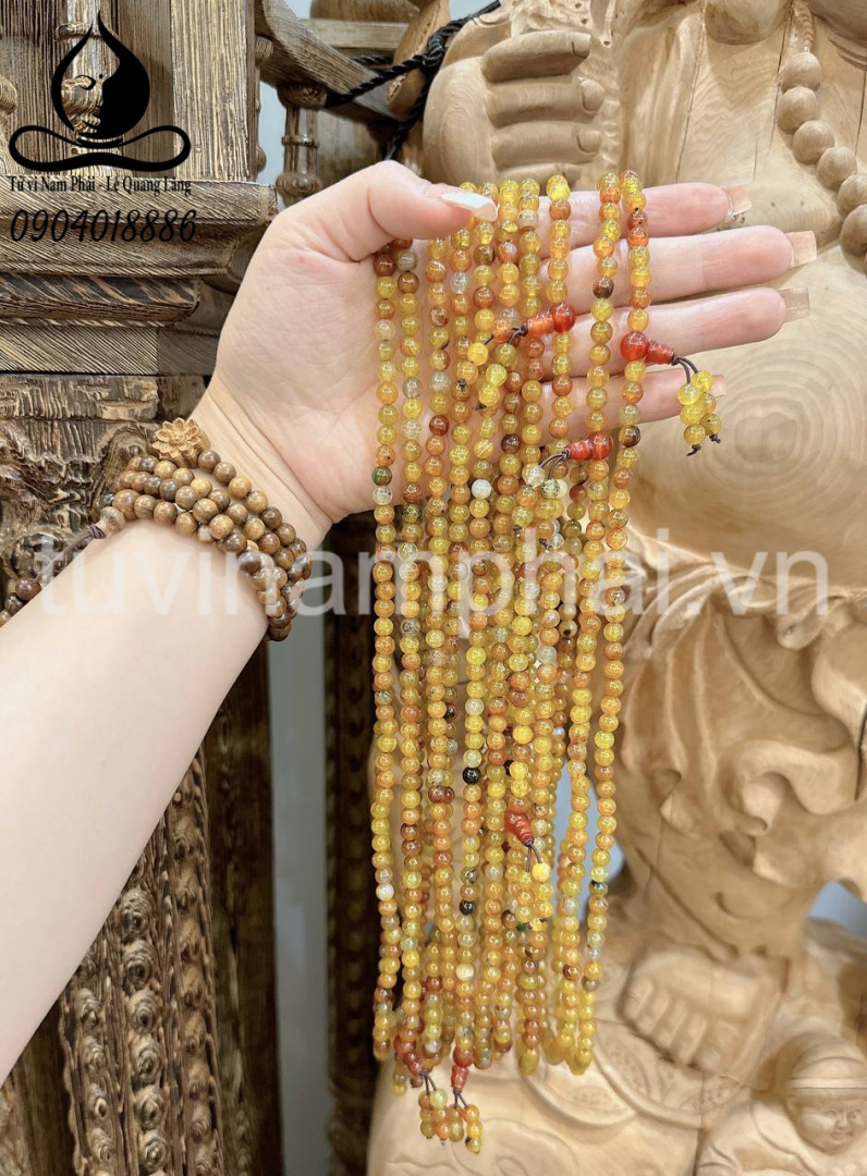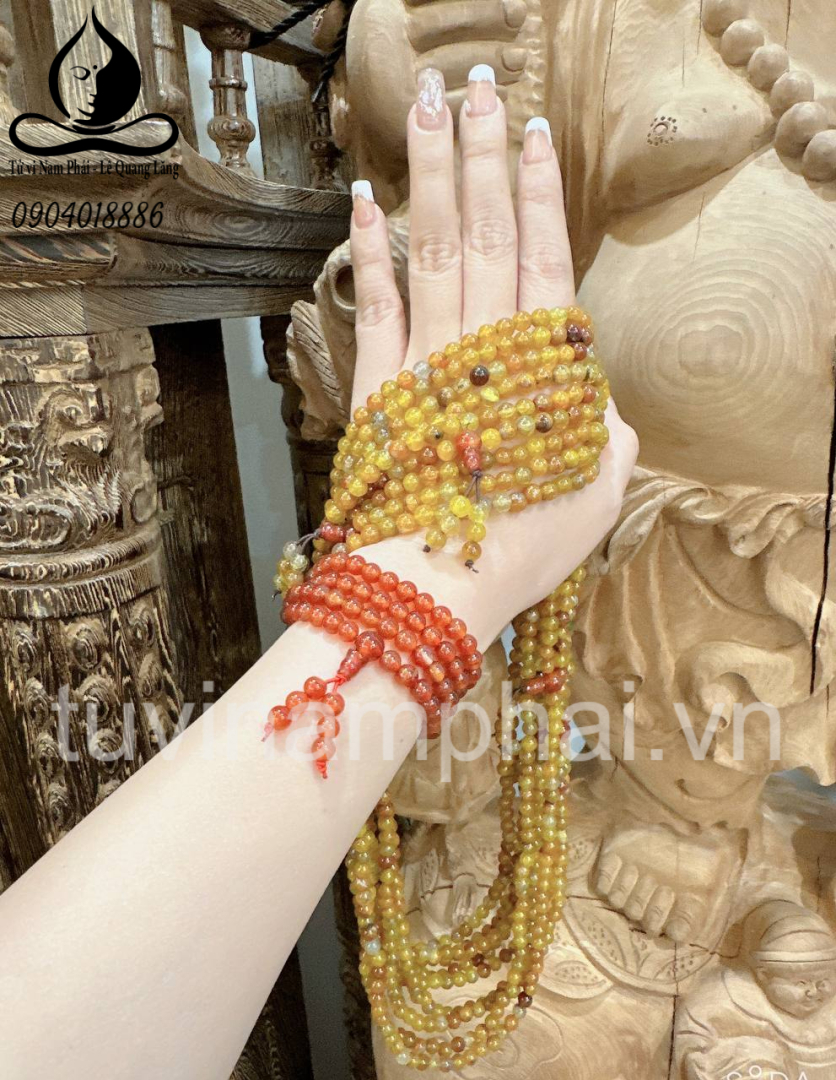 VÒNG CUỐN TAY 108 HẠT ĐÁ MÃ NÃO VÂN LONG