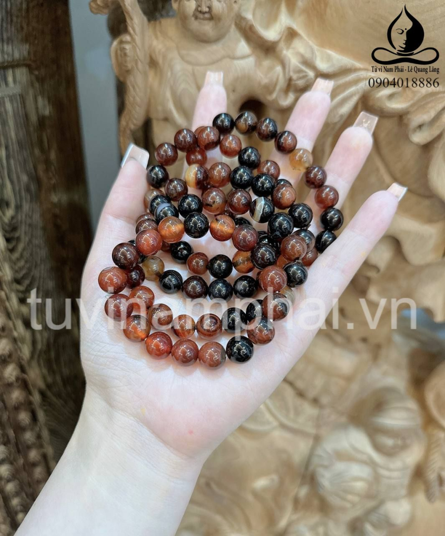 VÒNG TAY ĐÁ MÃ NÃO 12 LY ĐEN ĐỎ