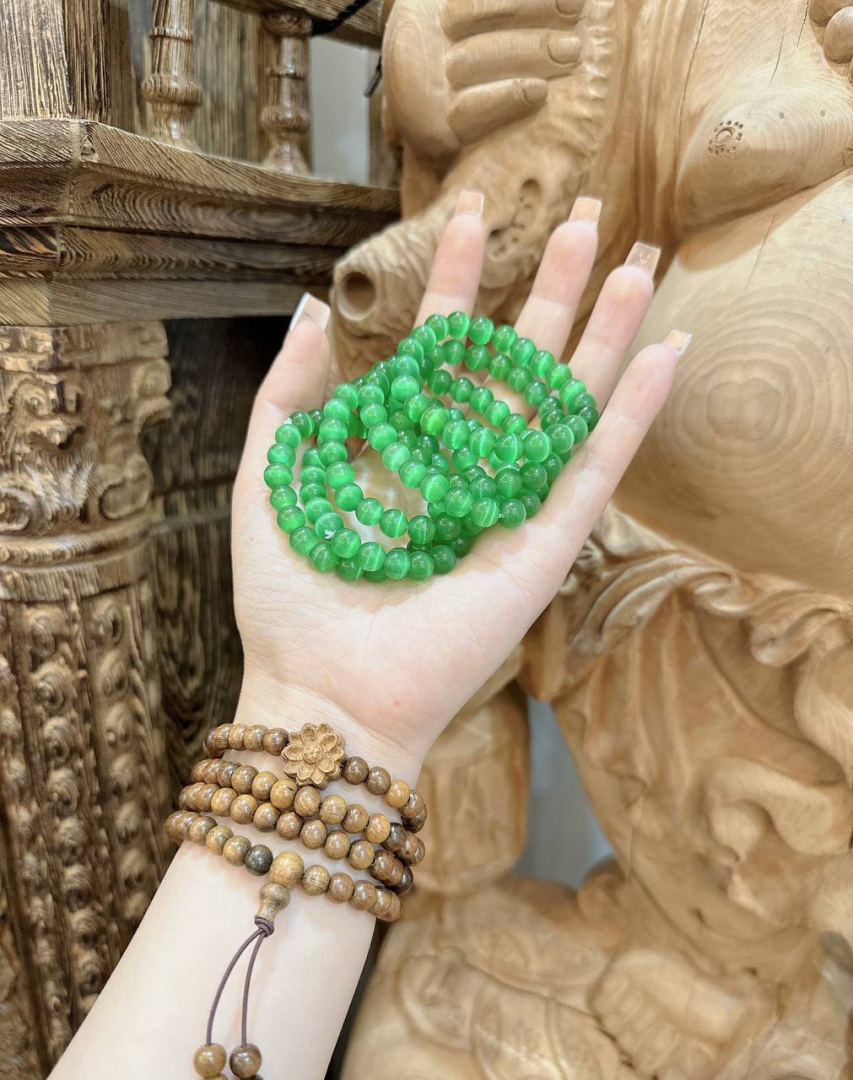 VÒNG CUỐN TAY 108 HẠT ĐÁ MÃ NÃÕ XANH LÁ